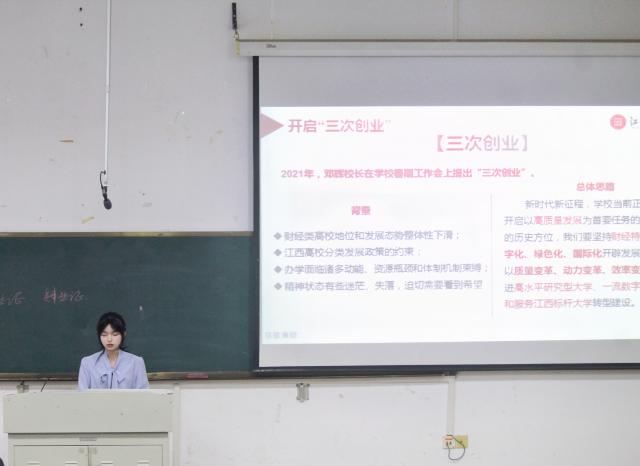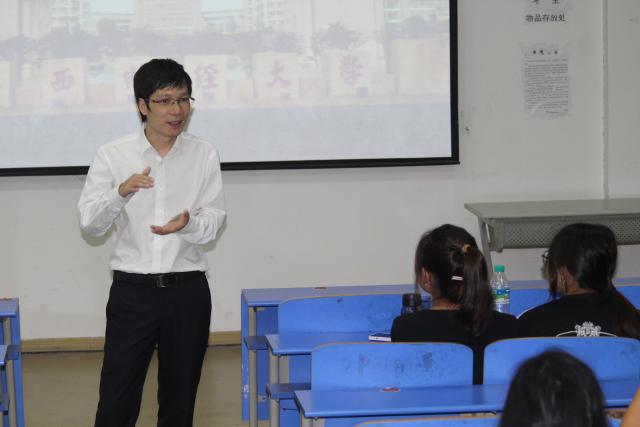 Teacher Wang Xiaoying, the teaching secretary, gave a lecture on "Application of Education System and Course Selection Guide". She explained in detail how to select courses and make course inquiries for new students from three aspects: the use of the education system, academic warning mechanism, and course selection arrangement. She focused on introducing the specific operation methods of the "Jiangxi University of Finance and Economics InformationPortal".